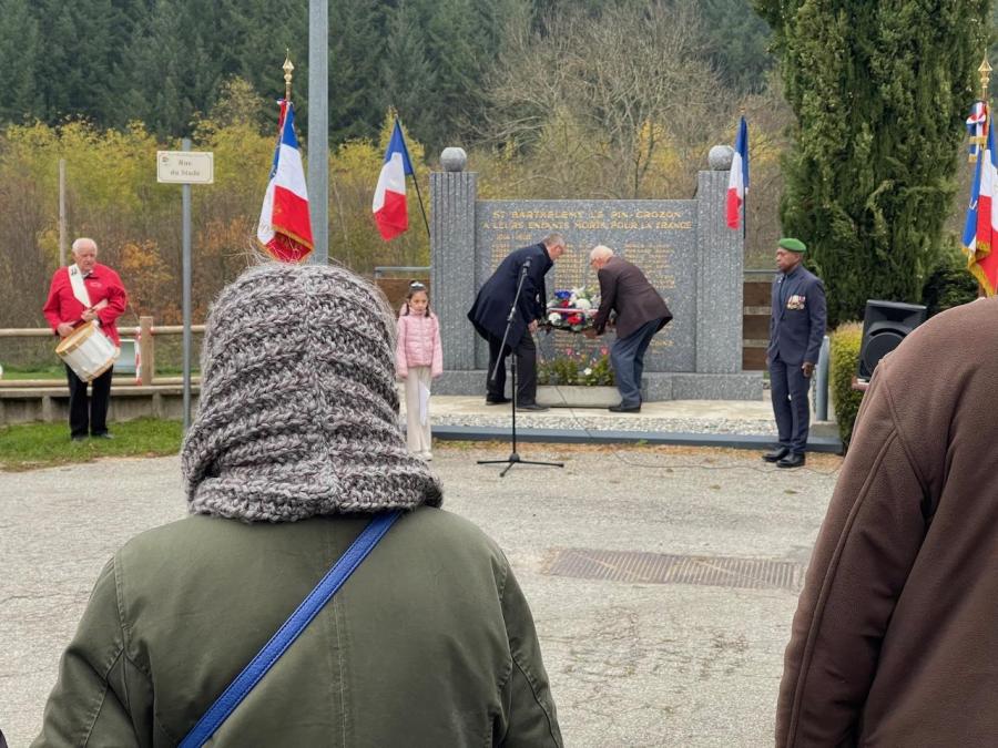 Cette année, les discours protocolaires furent lus par Zoé BERTHOMIER-MINEUR, Mya JOUANARD et Joyce CHAREYRE-ROUCH, toutes trois élèves de l'Ecole de Saint-Barthélemy-Grozon, avant que Jean-Paul DECULTY ne serve le message de Sébastien CHENU, Ministre des Armées. Puis Monsieur le Maire et Marcel SUCHIER, président de l'Association locale des Anciens Combattants déposèrent la gerbe au pied du Monument aux Morts et cloturèrent la cérémonie par l'émouvante lecture de la liste des Barthézonais morts pour la France.