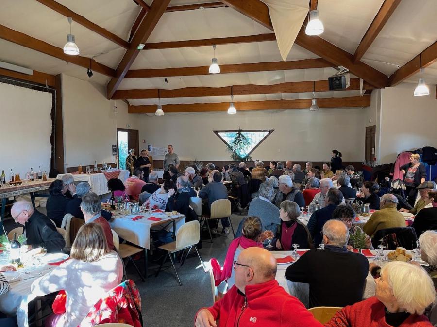 Dimanche 11 décembre, sur les coups de midi, la grande salle de Matras faisait une nouvelle fois le plein. Cette fois, c'était à l'initiative du Comité de Foire, qui avait tenu à célébrer le passage de témoin de la Foire au Boudin au Comité des Fêtes, en accueillant les bénévoles qui l'ont assisté pendant des décennies pour l'organisation de cette manifestation phare de la commune de Saint-Barthélemy-Grozon. Près d'une centaine de barthézonais avaient répondu présents à l'appel de Mauricette ROCHE et d'Alfred VEY.